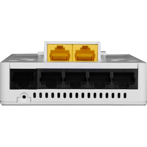 1)GE(RJ45,PoE In)×1,10M/100M/1000M 自适应; 2)GE(RJ45)× 4,10M/100M/1000M 自适应,其中一个接口支持 PoE out; 3)直通口 (RJ45,Pass-Through)×2 |